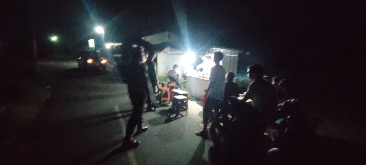 Personel kepolisian melakukan interaksi singkat dengan beberapa warga yang masih beraktivitas untuk menyampaikan pesan-pesan kamtibmas dan meningkatkan kewaspadaan terhadap lingkungan sekitar.